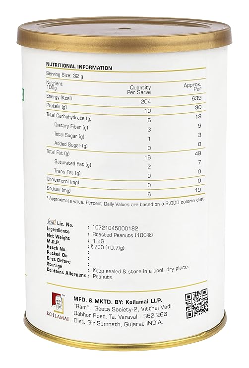 • With an impressive protein content of 32g per serving, Kollamai peanut butter provides a high-protein option for a nutritious and energizing snack.