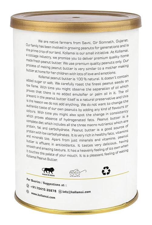 • The natural process of oil separation in Kollamai peanut butter shows its purity and the absence of oils and preservatives.