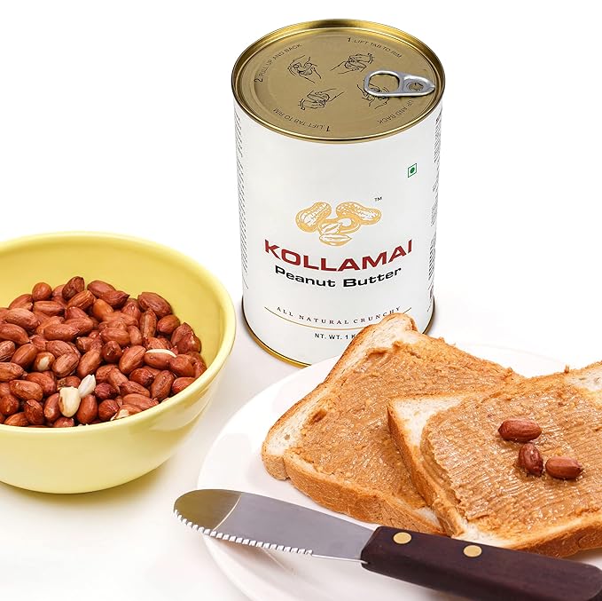 • Kollamai uses raw peanuts to craft its crunchy unsweetened peanut butter, ensuring a natural crunch in every bite.